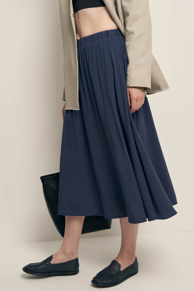 Струящаяся легкая юбка макси из вискозы — идеальный выбор для теплого сезона. А-силуэт и высокая посадка подчеркивают талию, создавая элегантный, женственный образ. Эластичный пояс с резинкой обеспечивает удобство в носке. В модели предусмотрена хлопковая подкладка для дополнительного комфорта.