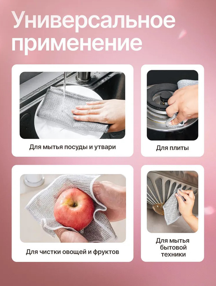 Уникальная структура губки и особое переплетение микроволокон обеспечивают деликатное, но в то же время мощное очищение от трудноудаляемых загрязнений, таких как засохший жир или остатки пригоревшей пищи. Такие универсальные губки идеально подходят не только для мытья посуды, но также легко справляются с очищением плит, бытовой техники, а также с мытьем фруктов и овощей. Это делает их незаменимыми помощниками на кухне. |