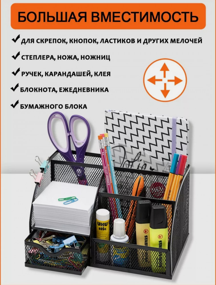 Этот простой и элегантный аксессуар станет незаменимым помощником на вашем рабочем месте. Состоит из семи секций, которые позволяют хранить и сортировать самые разные канцелярские принадлежности: от блоков для записи и кнопок до ручек и текстовыделителей. Органайзер изготовлен из прочного металла, что гарантирует его долговечность и надежность. Подставка поможет вам организовать рабочее пространство, держать в порядке все канцелярские принадлежности и быть всегда в курсе где что лежит. Благодаря своему простому и стильному дизайну, органайзер прекрасно впишется в интерьер любого рабочего пространства. Такой аксессуар нужен каждому, кто ценит порядок и стремится к эффективности в работе. Ведь когда всё лежит на своих местах, работать становится намного проще и приятнее. Подставка металлический органайзер настольный-простой, но в то же время эффективный способ поддерживать порядок на вашем рабочем столе.