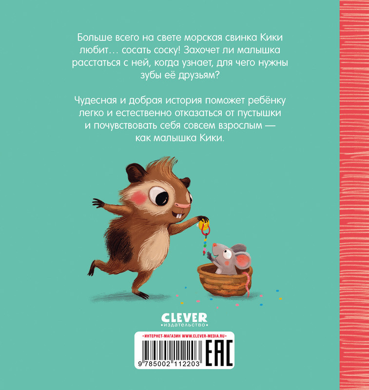 Кики, отдай соску!новинка В данный момент этот товар отсутствует в продаже. Возможно, у нас найдется аналогичный или похожий товар здесь. Серия: Играем. Учимся. Развиваемся «Кики, отдай соску!» — это книжка с картинками, которая понравится малышу и поможет родителям в нелегком деле — отучить кроху от пустышки. Расстаться с любимой соской ребенку будет совсем несложно, если он прочитает историю маленькой морской свинки. Кики никак не хотела отдавать свою пустышку. Но мама объясняла Кики, что соска может помешать зубкам морской свинки расти крепкими и здоровыми. Ведь пустышка нужна только малышам, у которых еще не прорезались зубы. |