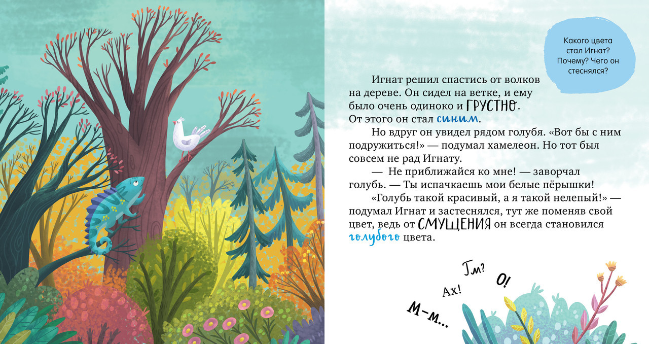 В данный момент этот товар отсутствует в продаже. Возможно, у нас найдется аналогичный или похожий товар здесь. Серия: Первые эмоции Хамелеон Игнат — очаровательный малыш, который меняет свой цвет в зависимости от настроения. Он ни на кого не похож, и другие зверята часто его не понимают. Вместе с маленьким читателем Игнат будет учится справляться со своими эмоциями и находить друзей.