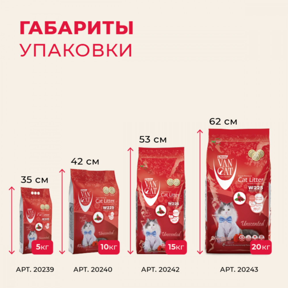 Van Cat Наполнитель для кошачьего туалета комкующийся «Natural»