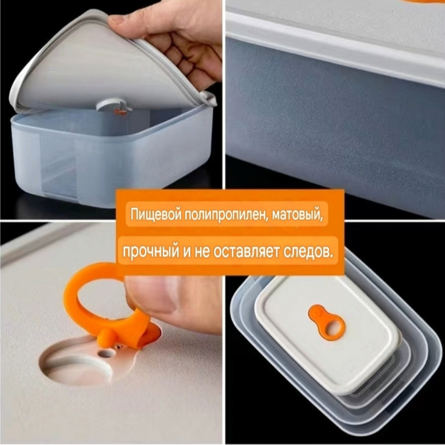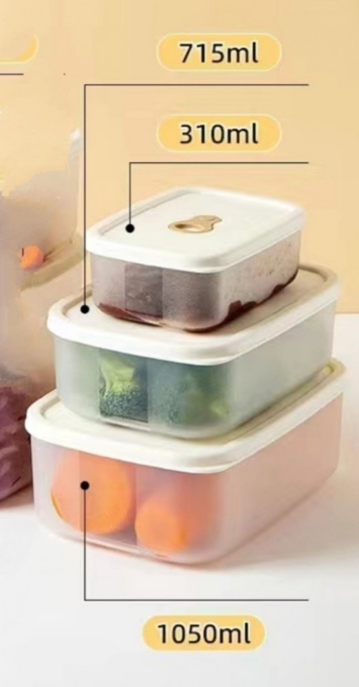 В набор входит три контейнера. Объём: 1050 мл, 715 мл и 310 мл. Матовый пищевой пластик. Удобно хранить в холодильнике. Удобно брать с собой. |