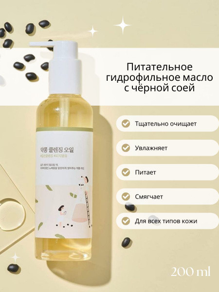 | Round Lab Гидрофильное масло для лица с чёрной соей питательное «Soybean Cleansing Oil»