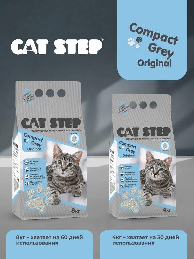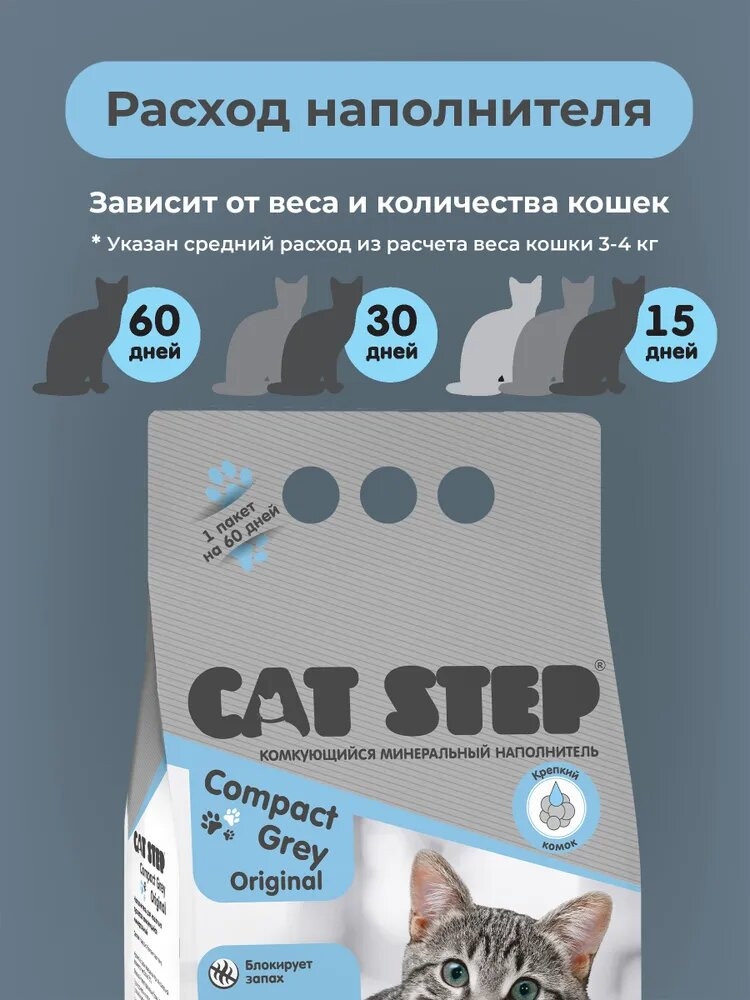 Наполнитель для кошачьего туалета комкующийся минеральный «Original» | Compact Grey | Cat Step