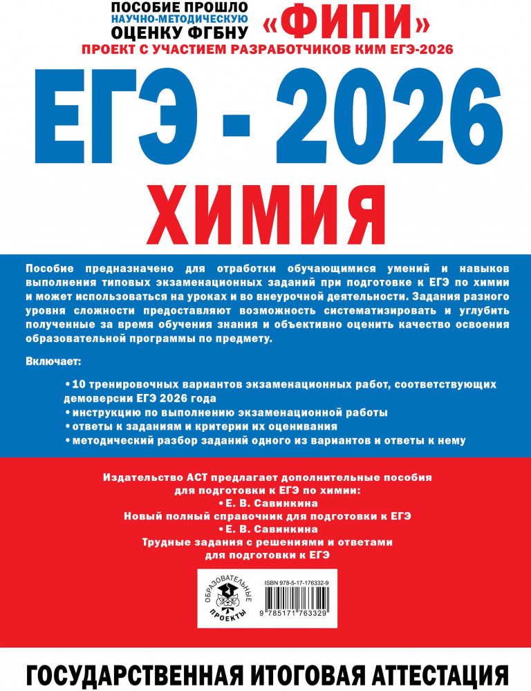 ЕГЭ-2026. Химия. 10 тренировочных вариантов экзаменационных работновинка -20%