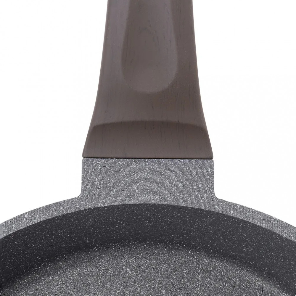 Ручки выполнены под дерево с мягким покрытием soft-touch, что обеспечивает удобство использования, приятные тактильные ощущения, предотвращает скольжение и нагрев. В комплект входит крышка, что делает использование ещё более удобным.