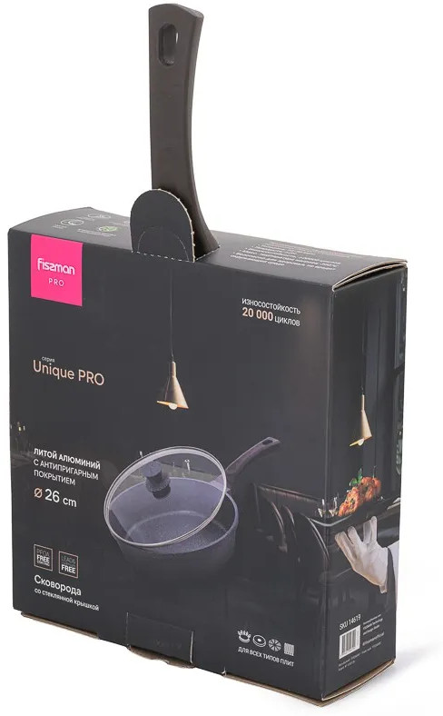 Одно из главных преимуществ Unique pro — способность выдерживать нагрев до 300 градусов. Утолщенный и тяжёлый литой алюминий обеспечивает прочность, устойчивость к деформации и помогает сохранять тепло внутри сковороды.