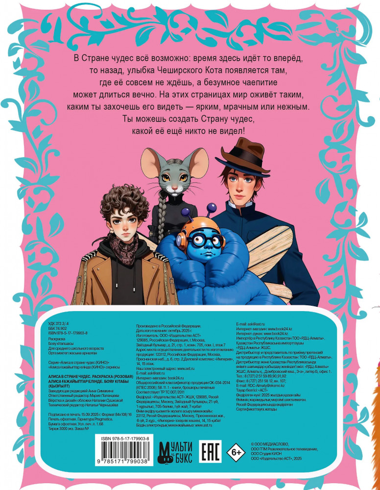 Серия: Алиса в стране чудес (Кино) В Стране чудес всё возможно: время здесь идёт то вперёд, то назад, улыбка Чеширского Кота появляется там, где её совсем не ждёшь, а безумное чаепитие может длиться вечно. На этих страницах мир оживёт таким, каким ты захочешь его видеть — ярким, мрачным или нежным. Ты можешь создать Страну чудес, какой её ещё никто не видел! |