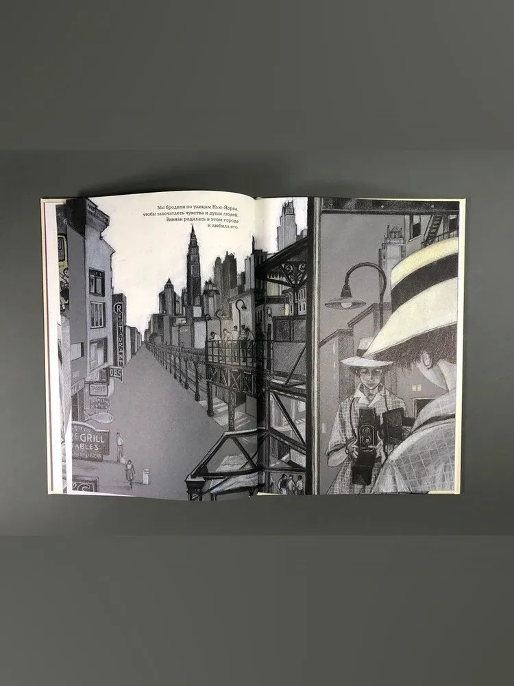 Вивиан была загадочной. Она мыла волосы лимоном и уксусом, носила мужские рубашки, ругалась по-французски, знала наизусть все рассказы О. Генри. У неё была птичья походка. Она, словно кулик на длинных ногах, прошла сквозь время, фотографируя его. |