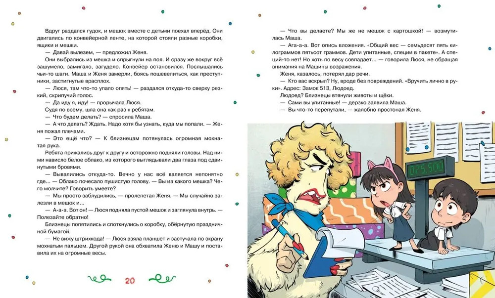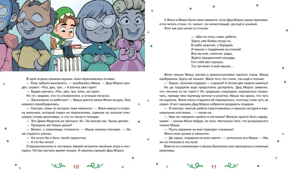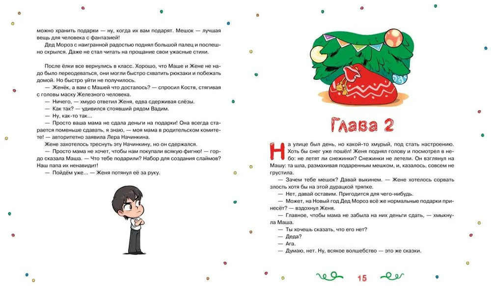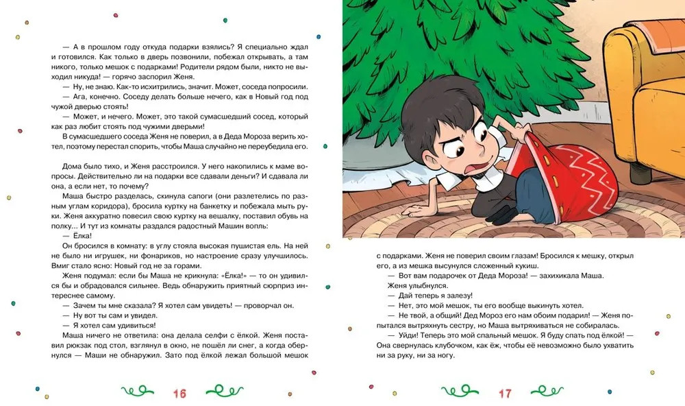 Книга, которая вдохновит поверить в добро и волшебство! Пусть новогоднее чудо начнётся прямо сейчас! Близнецы Маша и Женя почти перестали ждать чудес. На школьной ёлке им не досталось подарков... Зато достался мешок Деда Мороза, запрыгнув в который, можно оказаться в других мирах! Так ребята попадают в Страну Без Чудес. В этом мире волшебство запрещено, все дети работают и чётко следуют инструкциям. А вот в соседней Чудесной стране можно получить всё, что пожелаешь. Казалось бы, вот оно, счастье! Но Маша и Женя быстро понимают: желания, которые сбываются просто так, не приносят радости. Им нужно настоящее чудо. Но где его искать? В книге вы найдёте: цветные иллюстрации, яркое оформление и динамичный сюжет, который откликнется даже тем, кто перестал верить в новогоднее чудо. |