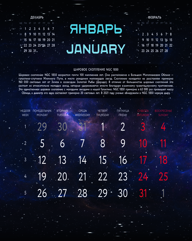 Серия: Календарь настенный на 2026 год В этом календаре представлены подлинные фотографии космоса, сделанные легендарным космическим телескопом «Хаббл». Его открытия стали настоящим прорывом в астрономии — не только для ученых, но и для широкой публики. В отличие от своих предшественников, «Хаббл» сделал космос ближе, понятнее и увлекательнее для людей всех возрастов. Его яркие и детализированные снимки стали основой для важнейших научных открытий, касающихся структуры и развития Вселенной, агалктик, туманностей, звезд, экзопланет и ближайших объектов в нашей Солничной системе. Благодаря наблюдениям «Хаббла» мы по-новому взглянули на бескрайний космос и на собственное место в нем. |