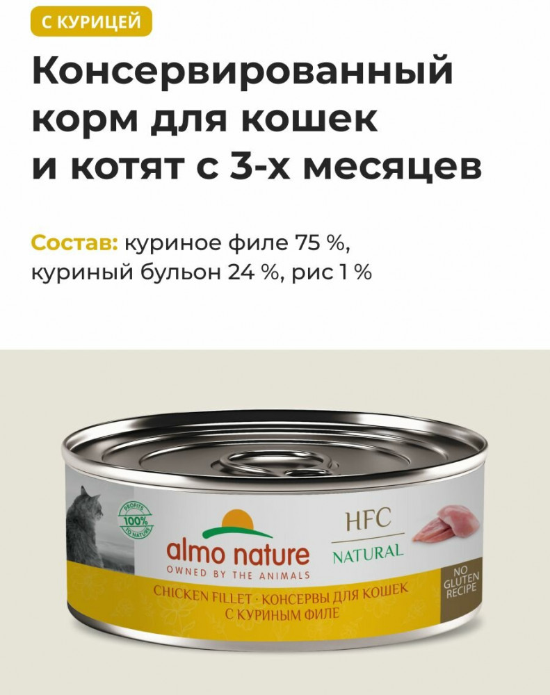 Almo Nature Корм влажный консервированный полнорационный для кошек с куриным филе «Chicken Fillet»