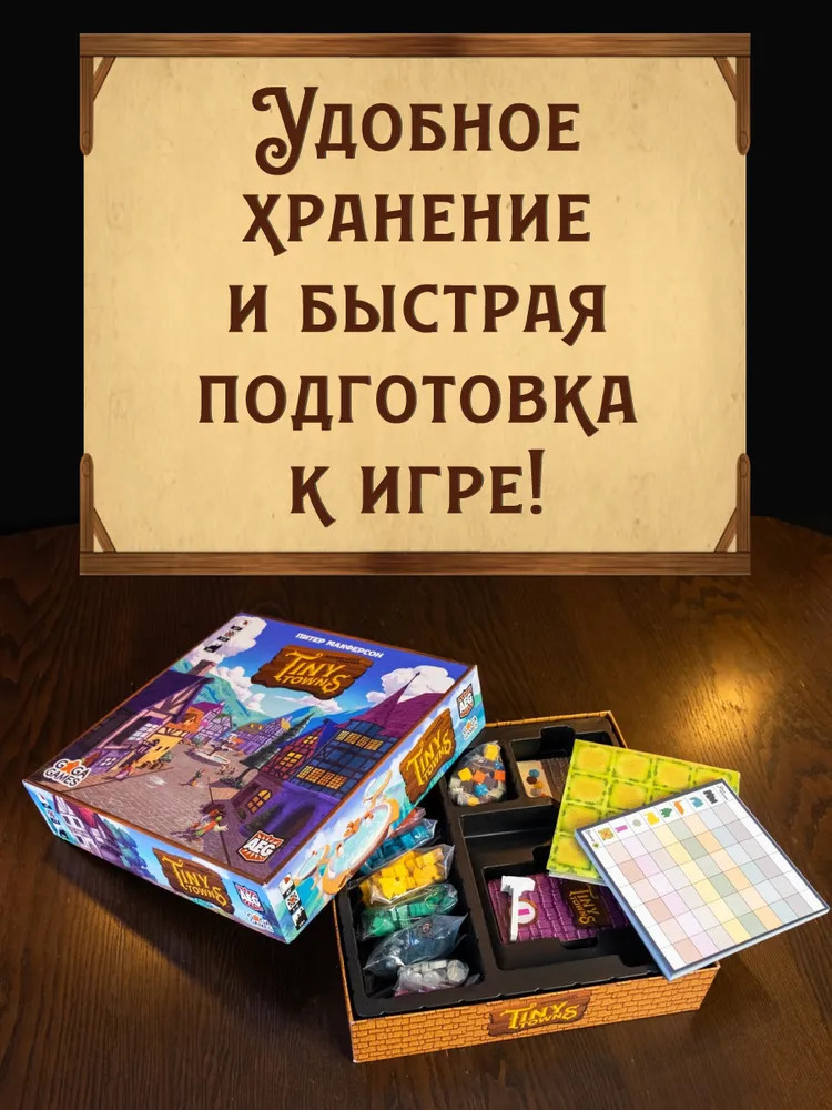 Оформление Крошечных Городов также привлекает внимание. Очаровательные иллюстрации, напоминающие кадры из волшебных мультфильмов, больше сотни деревянных домиков, которые так приятно держать в руках, — качество компонентов действительно на высоте.