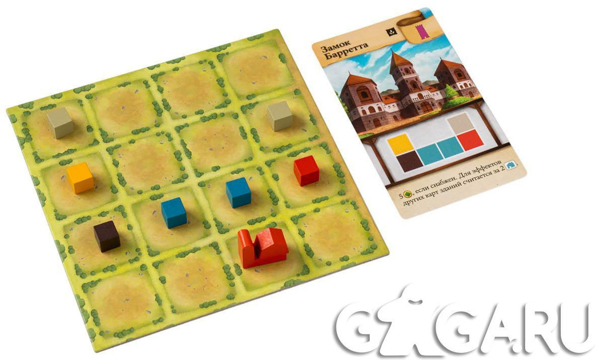 В начале игры ваш город — всего лишь пустой планшет, разделенный на 16 клеток. Вам предстоит заполнять его ресурсами, а уже из них строить самые разные здания. Причем от партии к партии эти здания будут меняться. Сегодня вы можете построить рынок и аббатство, а завтра вместо них вас ждут театр и часовня — и каждая постройка приносит победные очки немного по-своему. Каждый ход один из игроков получает молот главного строителя и называет тип ресурса. Все игроки обязаны взять куб соответствующего цвета и положить его на одну из клеток своего планшета. Ваша задача — собирать ресурсы в определенные фигуры, изображенные на картах зданий, лежащих в центре стола. Как только вам удалось выложить такую фигуру, вы можете сбросить все потраченные ресурсы и построить выбранное здание — разместить его фигурку на одной из задействованных клеток. Помните, что здания имеют различный эффект. Некоторые выгодно строить рядом, другие должны располагаться в углах поля, третьи могут хранить неугодные ресурсы. Используйте свойства зданий с умом — ведь только так можно победить!