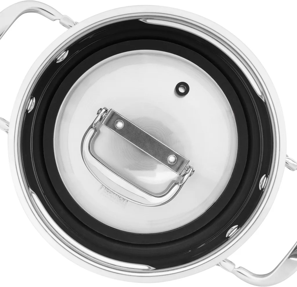 • крышка — из закалённого стекла с пароотводом, входит по диагонали в кастрюлю;