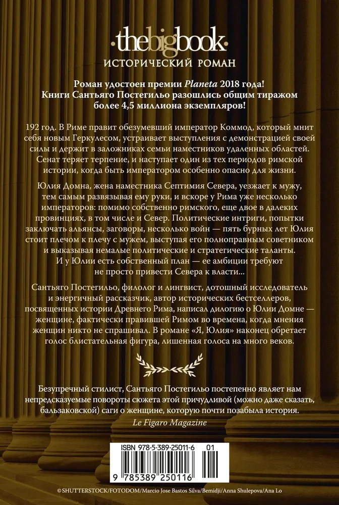 Серия: The Big Book. Исторический роман 192 год. В Риме правит обезумевший император Коммод, который мнит себя новым Геркулесом, устраивает показательные выступления с демонстрацией своей нечеловеческой силы и держит в заложниках семьи наместников удаленных областей. Сенат теряет остатки терпения, и наступает один из тех периодов римской истории, когда быть императором особенно опасно для жизни. После смерти Коммода Юлия Домна, жена наместника Септимия Севера, уезжает к мужу, тем самым развязывая ему руки, и вскоре у Рима оказывается несколько императоров: помимо собственно римского, еще двое в далеких провинциях, в том числе и Север. Политические интриги, попытки заключать альянсы, заговоры, несколько войн — пять бурных лет Юлия стоит плечом к плечу с мужем, выступая его полноправным советником и выказывая немалые политические и стратегические таланты. И у Юлии есть собственный план — ее амбиции требуют не просто привести Септимия Севера к власти... |