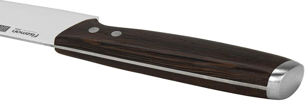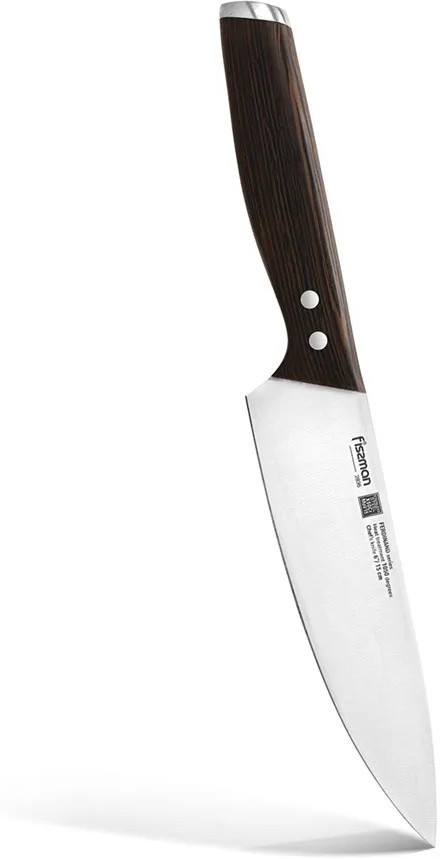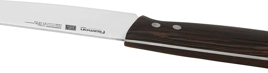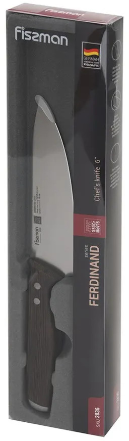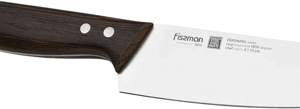 Поварской нож — незаменимый помощник на кухне. Им можно нарезать филе, нашинковать овощи, разделать мясо. Им также легко давить чеснок и другие специи, отбивать заготовки для стейков или разбивать панцирь крабов. Кухонные ножи серии Ferdinand выполнены из высоколегированной немецкой стали X50Cr15MoV, закаленной до 55 единиц по шкале Роквелла. Они обладают повышенной прочностью и подходят для частого использования. Лезвия имеют двухстороннюю симметричную заточку по всей длине режущей кромки, что обеспечивает легкую нарезку и разделку. Рукоятки из натурального африканского дерева Wenge имеют элегантную форму и обеспечивают надёжный захват. Изготовленные по особой технологии они очень удобны и эргономичны. Благодаря этой конструкции ножи безупречно сбалансированы и хорошо лежат в руке. Хотите получить надежного союзника в приготовлении быстрого завтрака, сытного обеда, изысканного ужина? Fissman поможет в реализации любых идей!