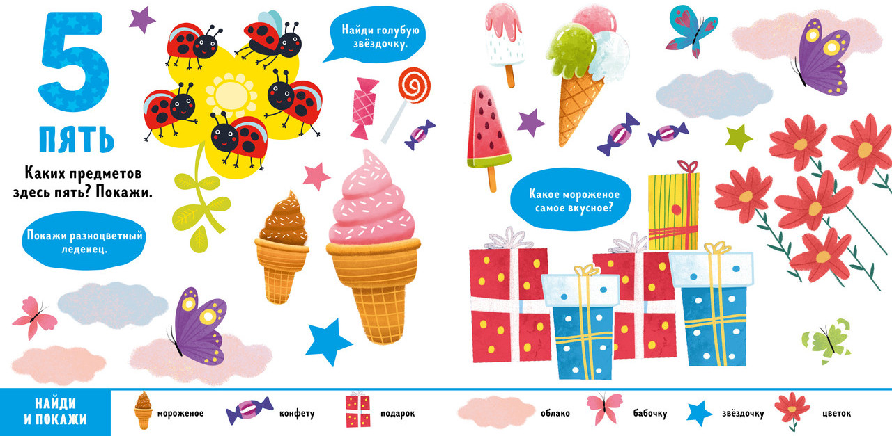 Серия: Найди и покажи, малыш Яркая книжка познакомит малыша с миром цифр и поможет легко освоить первый счёт. На каждой страничке из плотного картона ребенка ждут новые слова, увлекательные задания на внимательность и любимая игра «найди и покажи». |