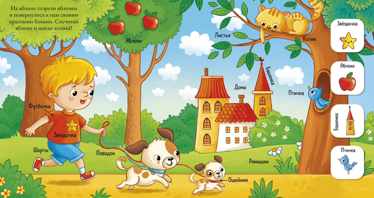 Книжка с яркими иллюстрациями и предметами для поиска «Найди и покажи. Найди и покажи, малыш. Времена года» способствует раннему развитию ребенка, развивая моторику, речь, внимательность и память у малышей 1, 2, 3 лет, а для детей постарше станет любимым пособием для первого чтения. Играя и рассматривая страницы виммельбуха, ребенок узнает много новых слов, познакомится с каждым временем года и поймет, чем оно интересно.