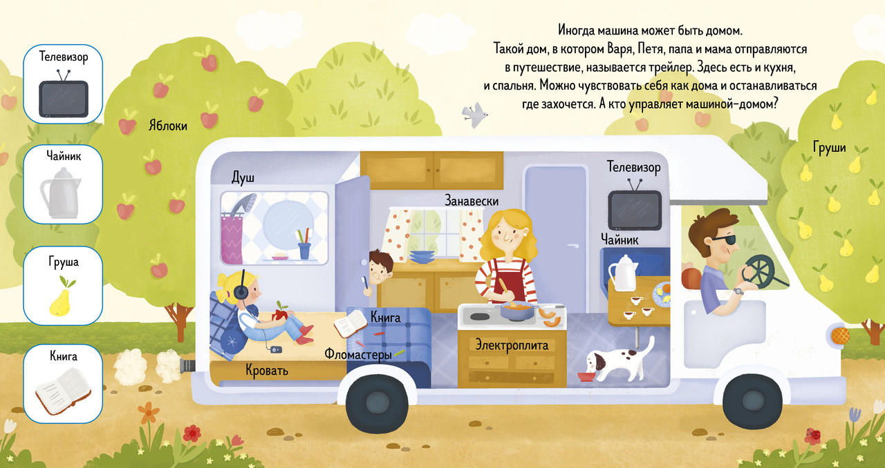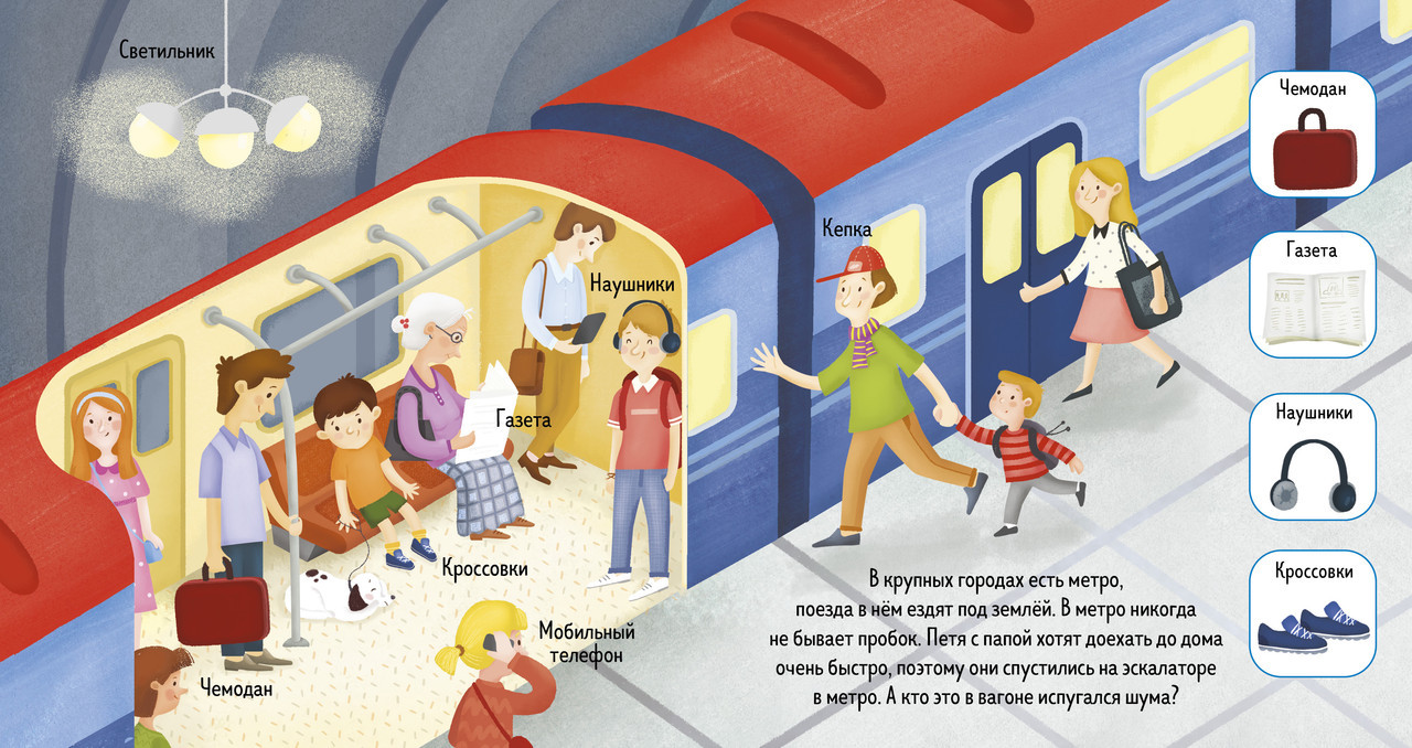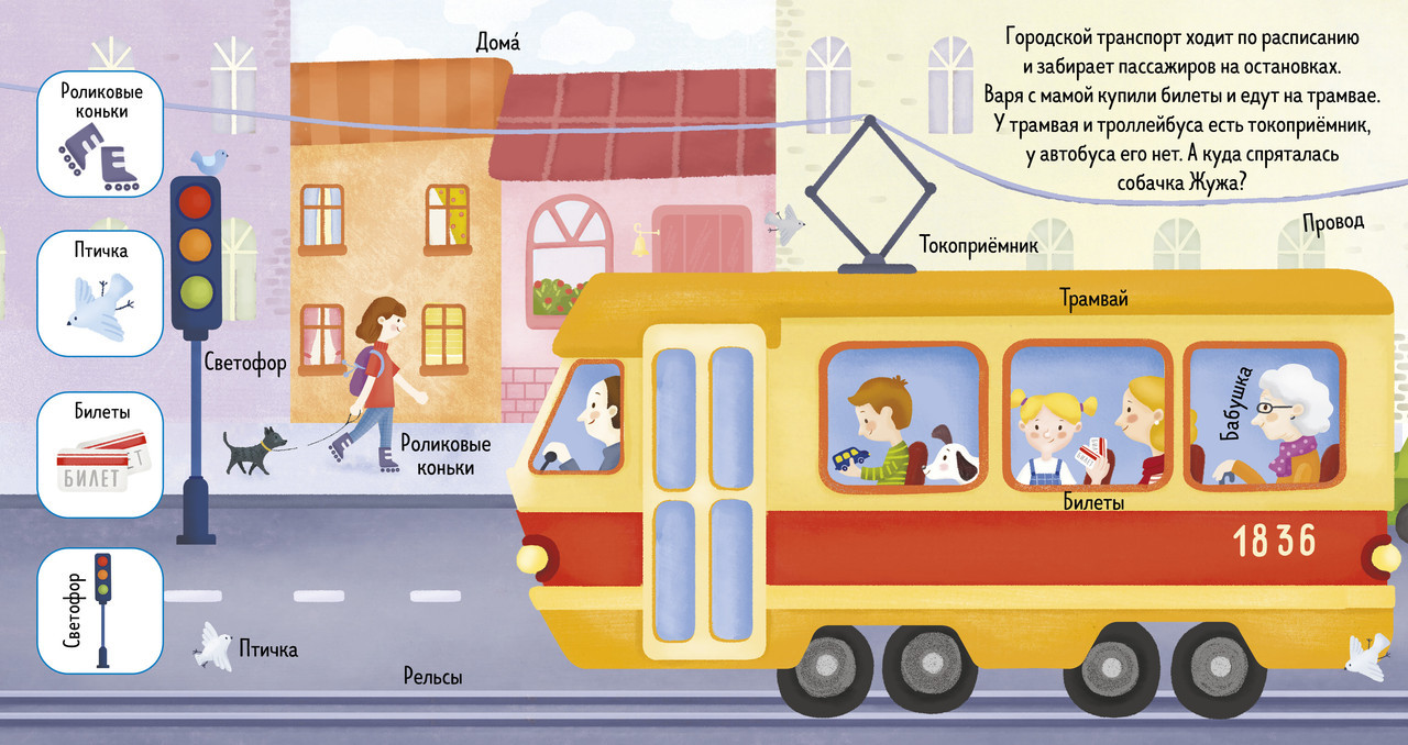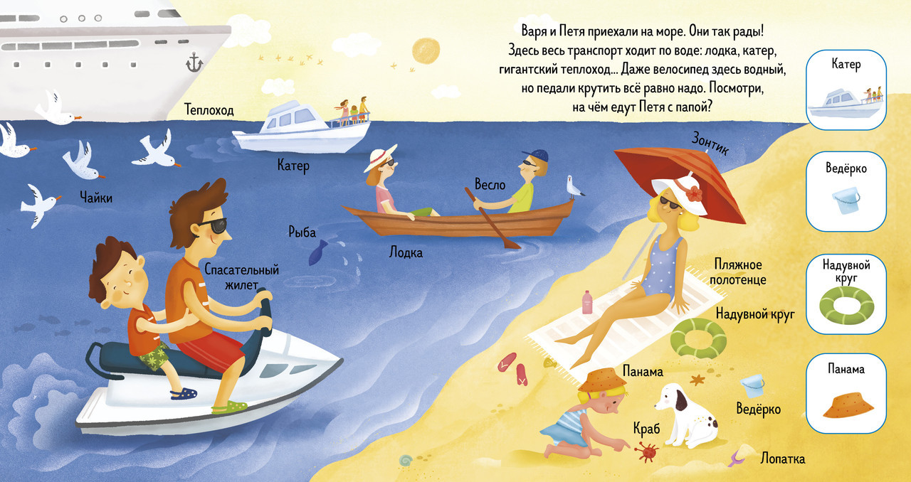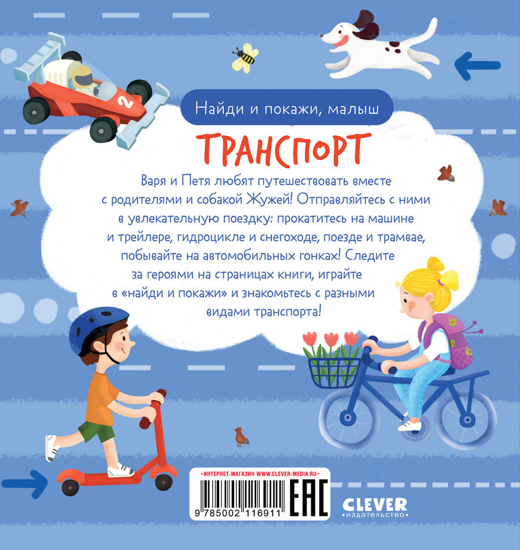Серия: Найди и покажи, малыш Варя и Петя любят путешествовать вместе с родителями и собакой Жужей! Отправляйтесь с ними в увлекательную поездку: прокатитесь на машине и трейлере, гидроцикле и снегоходе, поезде и трамвае, побывайте на автомобильных гонках! Следите за героями на страницах книги, играйте в «найди и покажи» и знакомьтесь с разными видами транспорта!