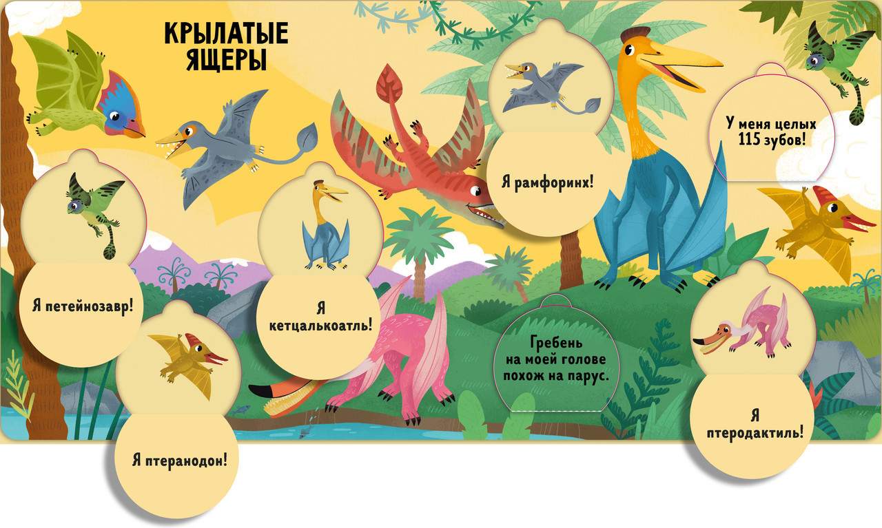 Серия: Книжка с окошками Отправляйся на доисторическую прогулку и открой тайны далекого прошлого! Загляни под клапаны — окошки: где прячутся тирекс, диплодок и велоцираптор? |
