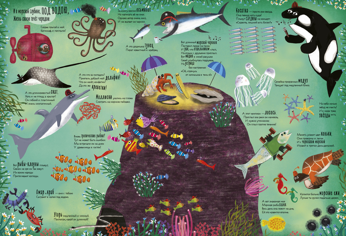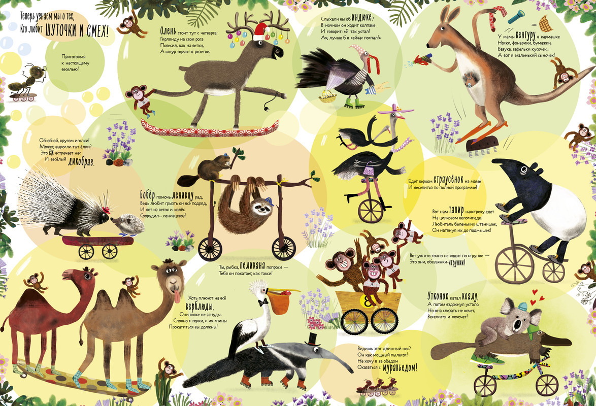 Серия: Читай, рассматривай, играй! Это книга 2 в 1: сборник веселых стихов и яркий виммельбух. Идеально для знакомства с самыми разными зверями, развития речи, внимания, памяти и творческого мышления детей! На страницах малыша ждут 200 веселых животных всех мастей и окрасок: от крошек до великанов, от домашних до диких, от смешных до свирепых. Среди них есть те, кто летает, и те, кто плавает. Простые и полные доброго юмора стихи сделают путешествие по книге еще веселее. Заучивайте их наизусть вместе с малышом, играйте в «найди и покажи», выполняйте задания. Книга — прекрасный подарок: твердый переплет, огромный формат, плотная бумага и яркие иллюстрации. |