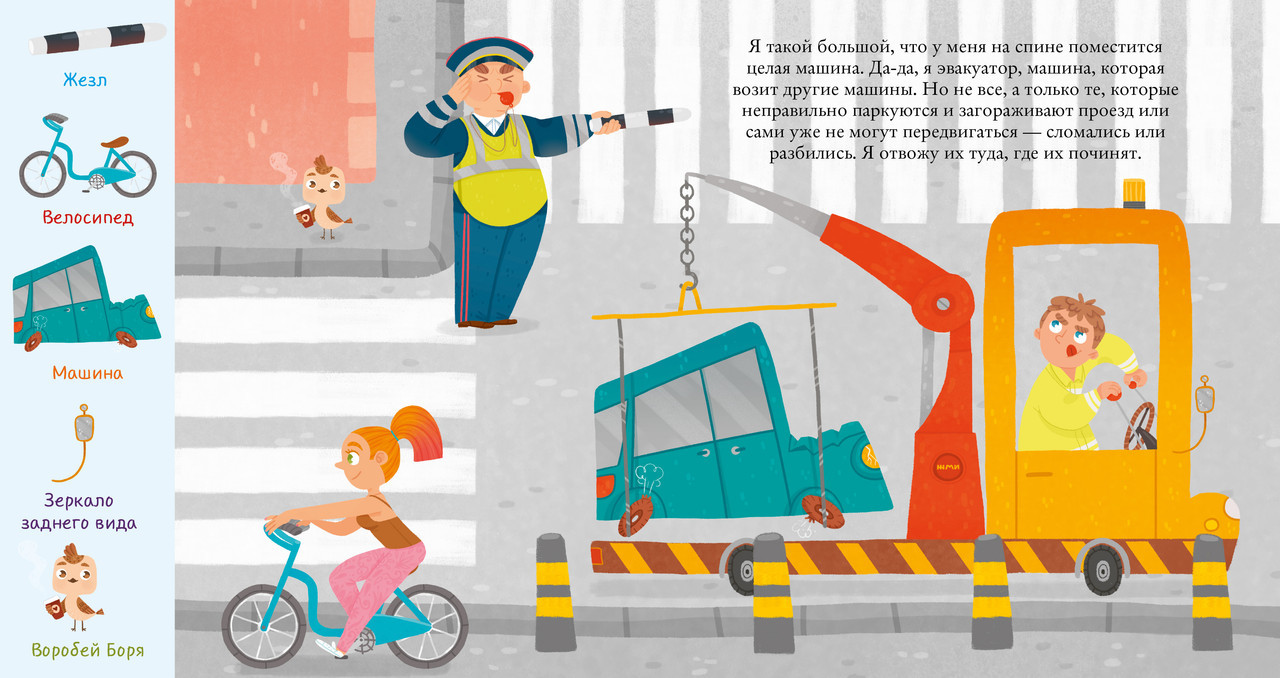На страницах книги «Найди и покажи, малыш. Машины и машинки» маленькие читатели познакомятся с разными видами транспорта: грузовиком, бетономешалкой, мусоровозом, подъемным краном, скорой помощью и многими другими. Рассматривайте панорамные картинки вместе с ребенком, ищите пять заданных предметов на каждом развороте и следите за приключениями воробья Бори. Где же он спрятался?