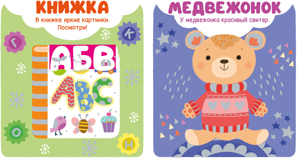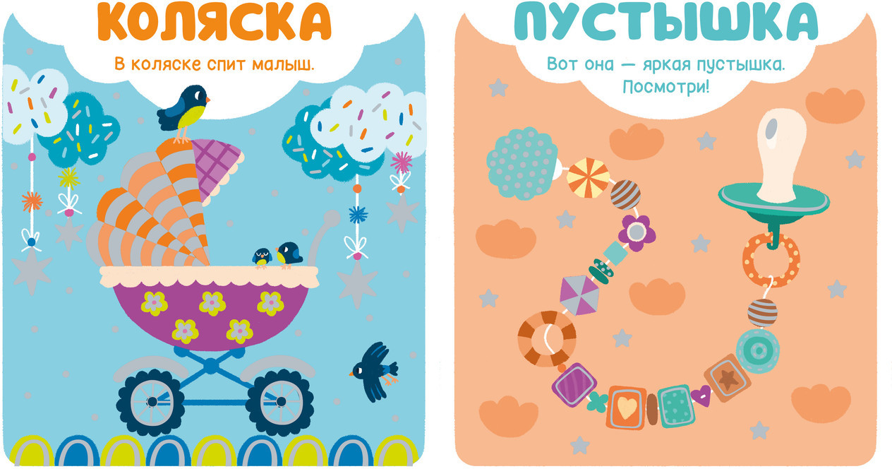 Рассматривайте красочные иллюстрации вместе, помогайте детям учить слова, развивать воображение и речь и весело играть!