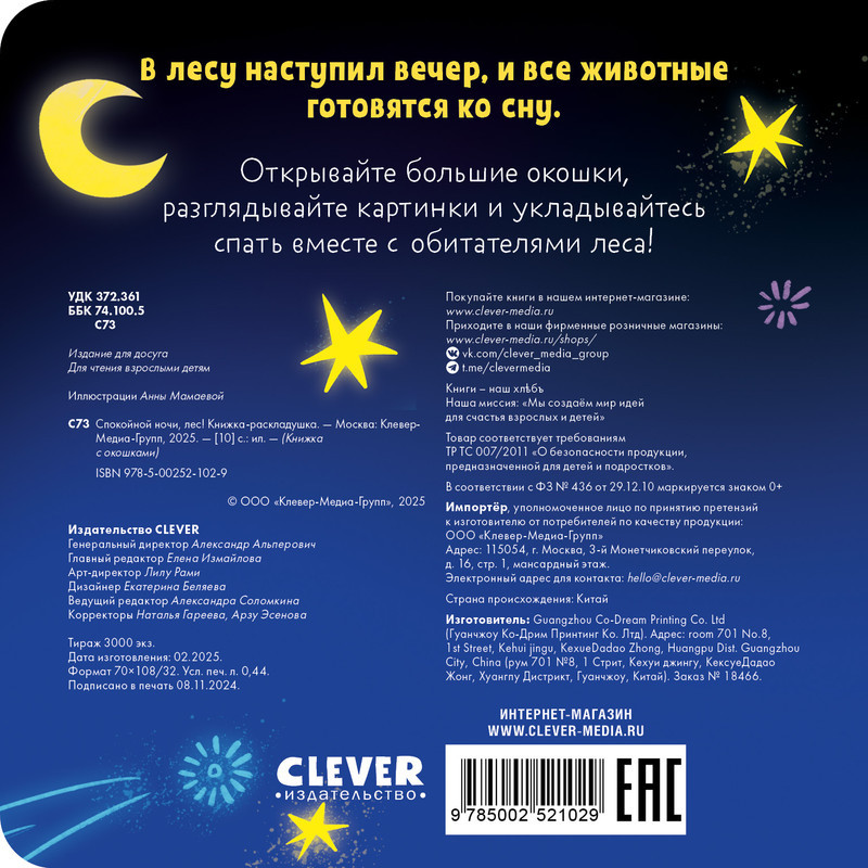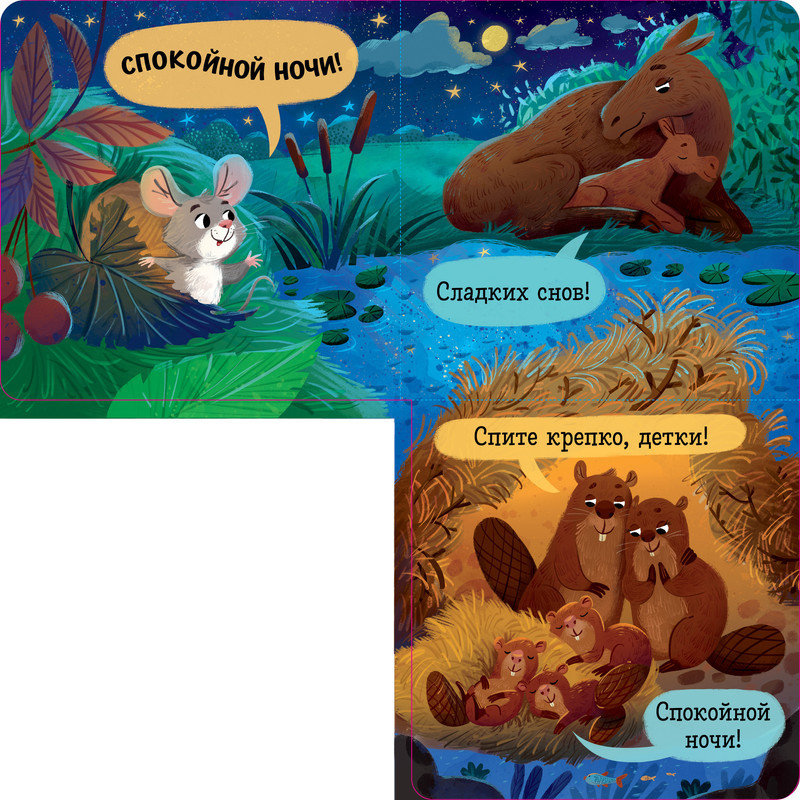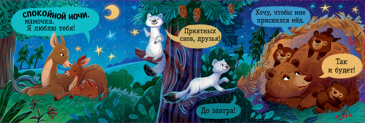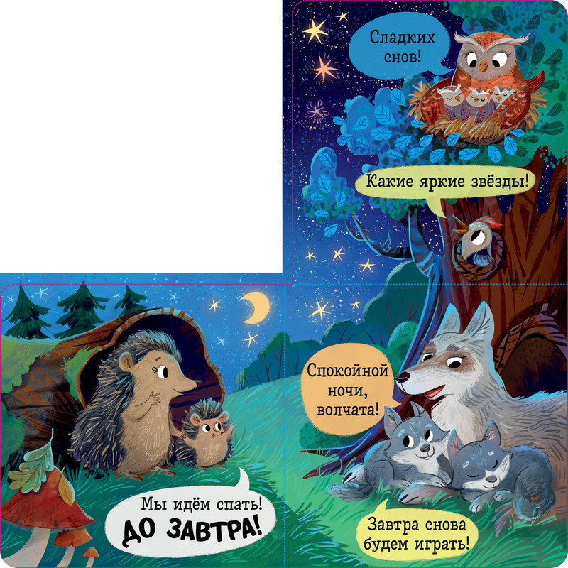 Вместе с малышом открывайте большие окошки книги для детей, придумывайте сказки для малышей по картинкам и готовьтесь ко сну, как и жители леса.