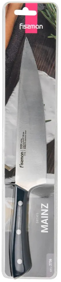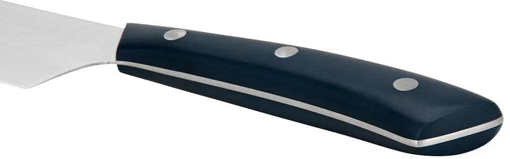 Большой поварской нож — самый важный на любой кухне. Лезвие длиной 20 см отлично подходит для разделки мяса и рыбы, нарезки овощей, пряных душистых трав. Можно отбивать заготовки для стейков и даже разбить хитиновый панцирь морских ракообразных. Широкой стороной лезвия удобно давить чеснок и душистый перец.
