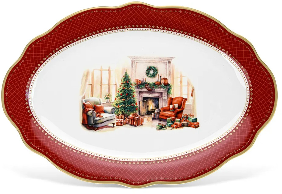 Серия: Christmas eve Представьте: вы заходите на кухню, а на столе — не просто блюдо, а целая зимняя сцена. Овальное блюдо Christmas eve 35×25 см из премиального фарфора — это больше, чем посуда. Это произведение искусства из эксклюзивной новогодней коллекции.
