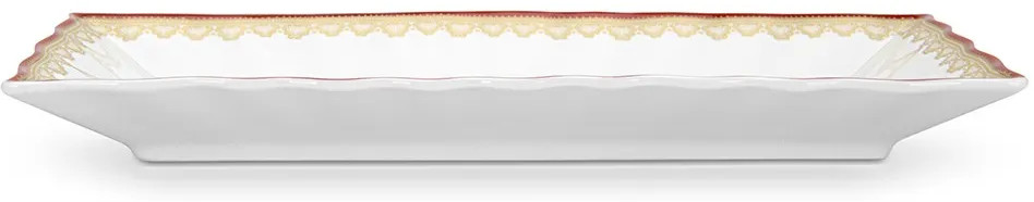 • тонкий красный кант подчёркивает золотой орнамент — изысканное сочетание, добавляющее праздничности даже самой простой подаче закусок или десертов;