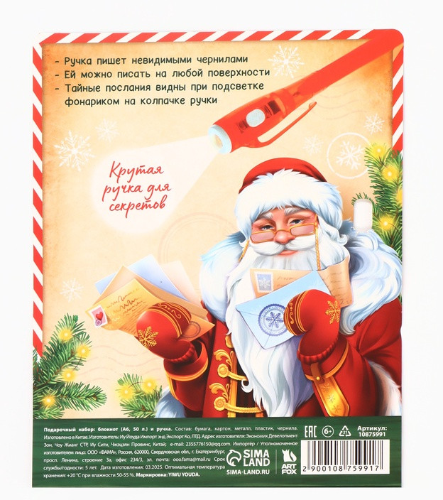 Мир, где обычные записи превращаются в настоящее волшебство! Этот удивительный набор откроет для ребёнка дверь в страну тайн и загадок, где каждое написанное слово станет невидимым, а затем чудесным образом проявится вновь. В комплекте всё необходимое для создания собственных секретных посланий: блокнот и специальная ручка, пишущая невидимыми чернилами. Юный исследователь сможет: создавать тайные дневники и записки, которые никто не сможет прочитать без специального света, обмениваться секретными посланиями с друзьями, развивать воображение и творческие способности.