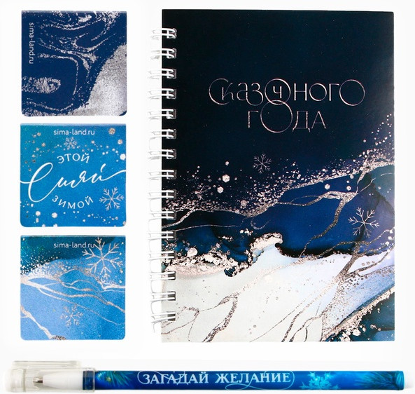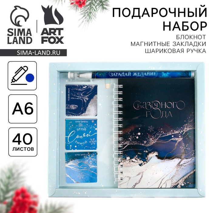 блокнот А6 40 л, ручка, магнитные закладки – 3 шт.