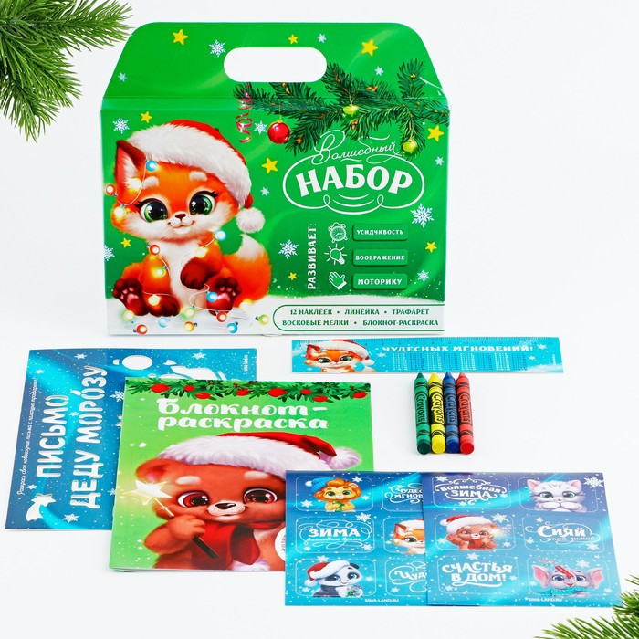 Подарочный набор — это настоящее чудо под ёлкой! Каждый предмет — как маленький сюрприз, наполненный зимним настроением, вдохновением и радостью. Такой набор подарит ребёнку море положительных эмоций, разовьёт фантазию и сделает подготовку к празднику особенно яркой. Идеальный подарок для маленьких мечтателей, которые верят в чудеса и любят создавать их своими руками! |
