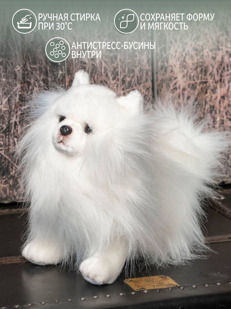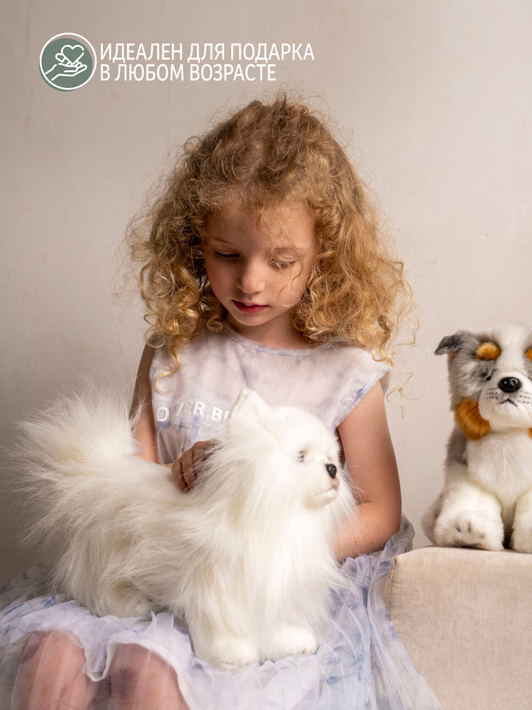 Серия: Real animals Мягкая игрушка Померанский шпиц из коллекции Real Animals — это реалистичная копия настоящей собаки этой породы длиной 27 см. Маленькая собачка с пушистой и объёмной шерстью выглядит как живая. У неё круглая голова, выразительные чёрные пластиковые глаза и аккуратный нос. Маленькие треугольные уши придают ей особое очарование. Тело компактное и пропорциональное, с короткими ногами и пушистым хвостом, который закручен вверх. Мягкая длинная шерсть выполнена из высококачественного искусственного меха, который очень приятен на ощупь. Эта плюшевая собака стоит на лапках и не сидит, что делает её ещё более реалистичной и живой. Внутри пластиковые бусины, что позволяет использовать её как антистресс. Это отличный подарок для девочек, мальчиков и подростков. Милая собачка станет верным и уютным питомцем, который способен принести радость и комфорт в дом.. Плюшевый щенок Померанский шпиц — настоящий друг и тактильная игрушка, которую хочется обнимать и держать рядом. Он станет настоящим пушистым питомцем в игрушечной коллекции. Такая игрушечная собачка — прекрасный выбор для любого праздника, будь то день рождения или сюрприз просто так. Этот реалистичный пёс — это мягкий и нежный друг, который подарит тепло и улыбки. Померанский шпиц понравится и детям, и взрослым, любящим милые и качественные игрушки. Он станет радостью для всей семьи и верным спутником во многих играх. |