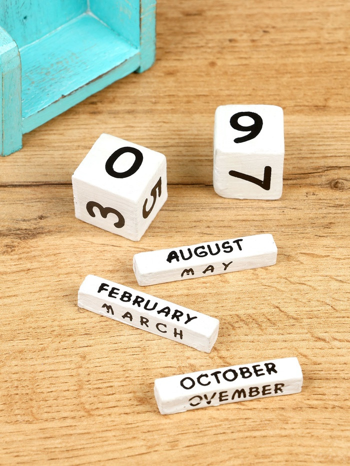 Вечный календарь с кубиками. Этот календарь, который будет служить Вам вечно, из года в год. Вместо того чтобы рвать листы, переставлять окошечко в квартальнике, Вам просто нужно крутить кубики с числами и разворачивать полосочки-месяцы, и вуяля! Это не только весело, но и красиво, ведь это не просто календарь, а настоящий индонезийский сувенир. |