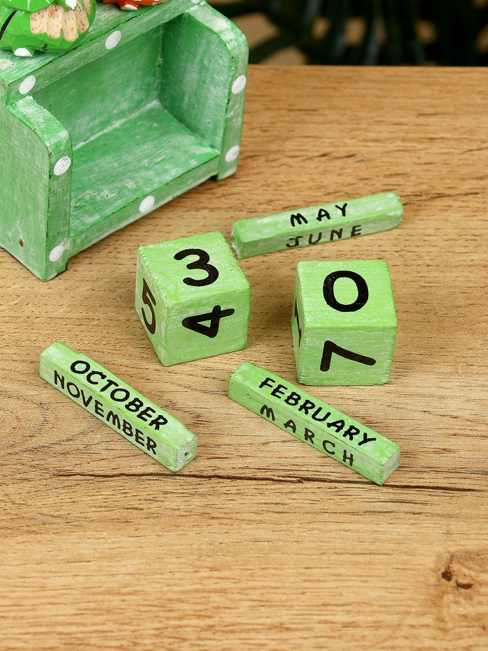 Вечный календарь с кубиками. Этот календарь, который будет служить Вам вечно, из года в год. Вместо того чтобы рвать листы, переставлять окошечко в квартальнике, Вам просто нужно крутить кубики с числами и разворачивать полосочки-месяцы, и вуяля! Это не только весело, но и красиво, ведь это не просто календарь, а настоящий индонезийский сувенир. |