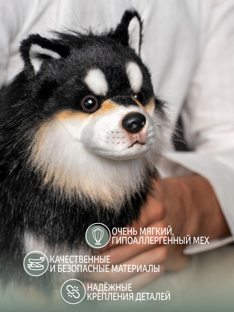 Серия: Real animals Мягкая игрушка собака реалистичная Финская лайка 27 см из коллекции Real Animals — это превосходный плюшевый щенок, который выглядит как настоящая живая собака. Эта собачка выполнена из высококачественного искусственного меха, мягкая и пушистая на ощупь. Пёс стоит на крепких лапках и не сидит, что придаёт выразительность и реалистичность. Пёс с крепким и пропорциональным телосложением. У игрушечной лайки острая, треугольная голова с вытянутой мордочкой и выразительными чёрными глазками. Уши треугольной формы, стоячие и расположены высоко. Шерсть средней длины, плотная, с чёрным окрасом, белыми лапками и воротничком, а также с небольшими рыжими отметинами. Пушистый хвост придаёт псу дополнительную живость. Тело набито пластиковыми бусинами, что позволяет использовать его как антистресс. Это настоящий питомец и пушистый друг, который подарит много тепла. Игрушечная лайка — это тактильная игрушка, которая развивает чувство заботы и любви к животным. Плюшевый щенок станет любимцем в семье. Подарите эту мягкую собачку просто так или в особенный день, и она наполнит дом радостью и комфортом. Собака с коллекции Real Animals — лучший выбор для настоящих ценителей плюшевых друзей. |