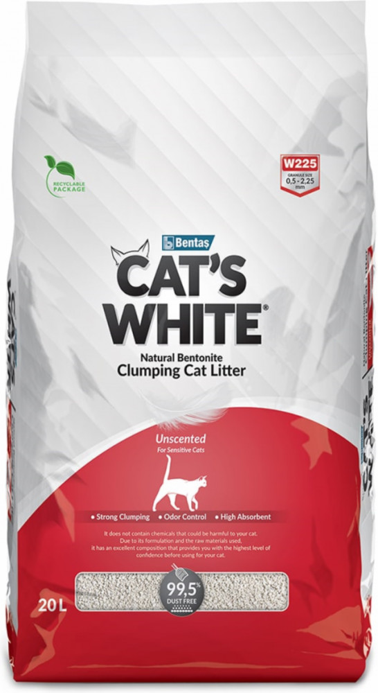 «Cat’s White» — премиальные комкующиеся наполнители из 100% натуральной бентонитовой глины. Монтмориллонит в структуре глины полностью нейтрализует неприятные запахи. «Cat’s White Natural» — это 100% натуральный наполнитель для кошачьего туалета. Не содержит ароматизаторов, что делает возможным использование наполнителя чувствительным к ароматам кошкам и владельцам.