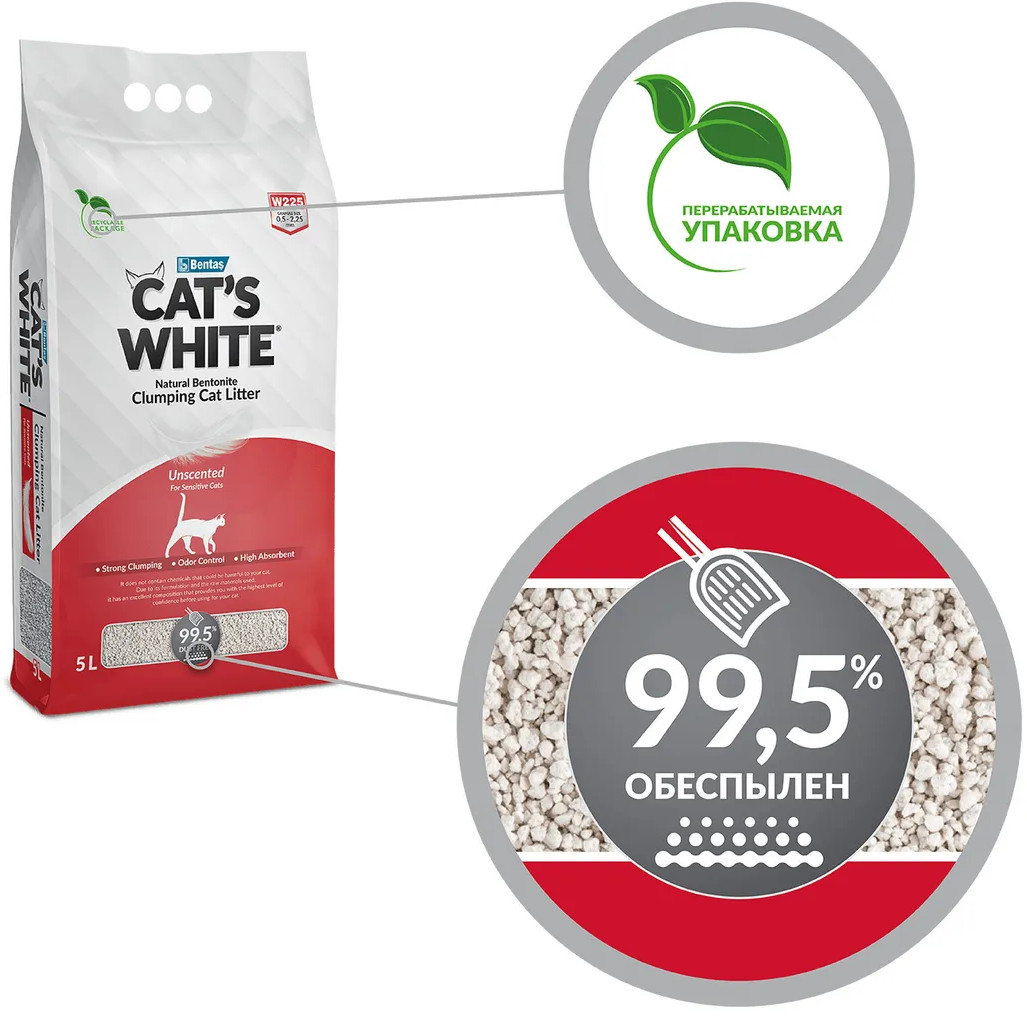 Наполнители «Cat’s White» создают гигиеничную среду благодаря превосходному комкованию за 5 секунд. Высокая абсорбирующая способность до 300% и мгновенное образование плотного комка за 5 секунд позволяют не только быстро и надежно запирать неприятные запахи, но и сохранять наполнитель чистым. Плотные комки надежно удерживают влагу, не крошатся и легко удаляются из лотка, поэтому полная замена наполнителя не требуется. Благодаря этому «Cat’s White» удобен и экономичен. На 99,5% очищен от пыли, не оставляет следов в доме и безопасен для кошек и их владельцев.