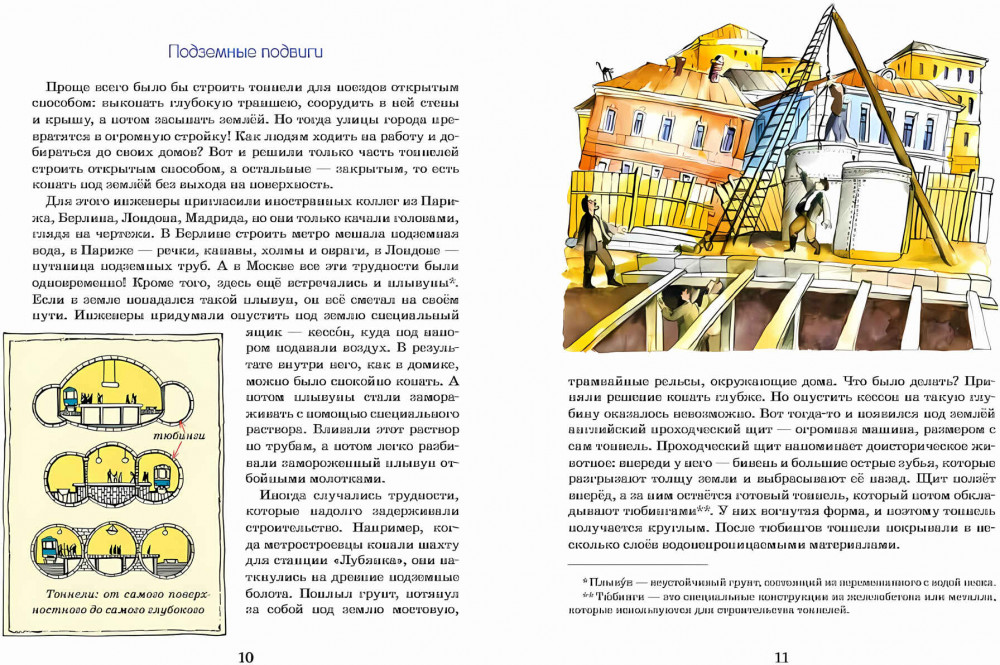 Читатель узнает о том, где на нашей планете появились первые «подземки» и какими они были, как проектировалось и строилось метро в России, как прокладываются подземные пути, что такое «плывуны» и «проходческий щит», какие объекты связывали между собой первые линии московского метрополитена, что происходило на станциях метро в годы Великой Отечественной войны. Много интересного рассказано в книге о том, как подают в метро чистый воздух, какие уникальные светильники установлены на разных станциях, как с течением времени менялись вагоны, эскалаторы, турникеты и билеты, наконец, о том, где ночуют поезда и как обеспечивается безопасность пассажиров. И, конечно, автор говорит о том, какие открытия можно сделать в этом необыкновенном музее под землей. |