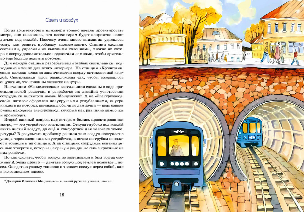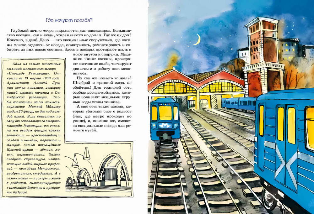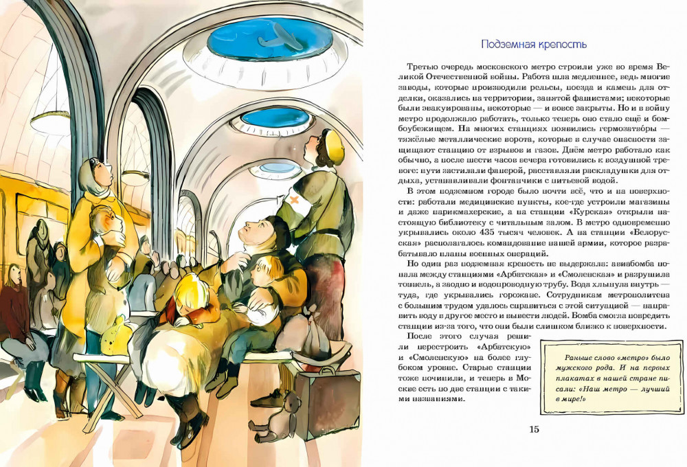 Серия: Познавательные книги Метро — самый быстрый вид городского транспорта. Пользоваться им, наверное, приходилось каждому. Но не каждый задумывался о том, что метро — это целый подземный мир, огромный, сложный и очень интересный. Познакомиться с ним поближе помогает эта насыщенная разнообразной информацией книга. Она посвящена открытому в 1935 году Московскому метрополитену, который считается самым красивым в мире.