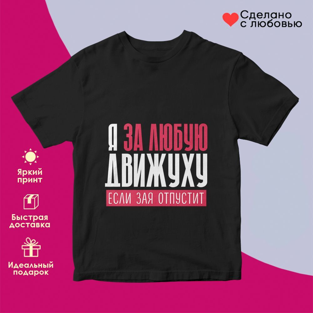 Футболка с принтом «Я за любую движуху, если зая отпустит» | TopPoshiv