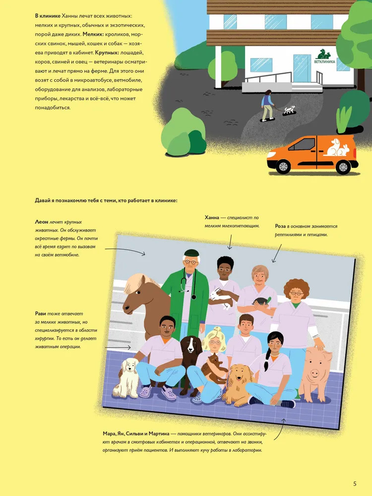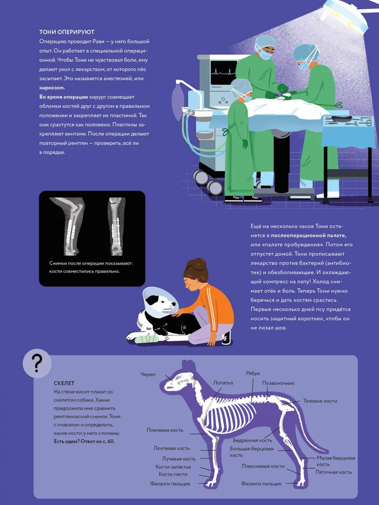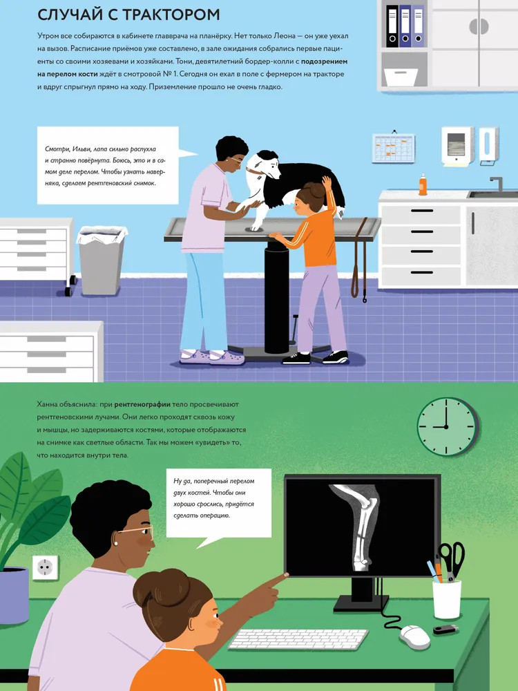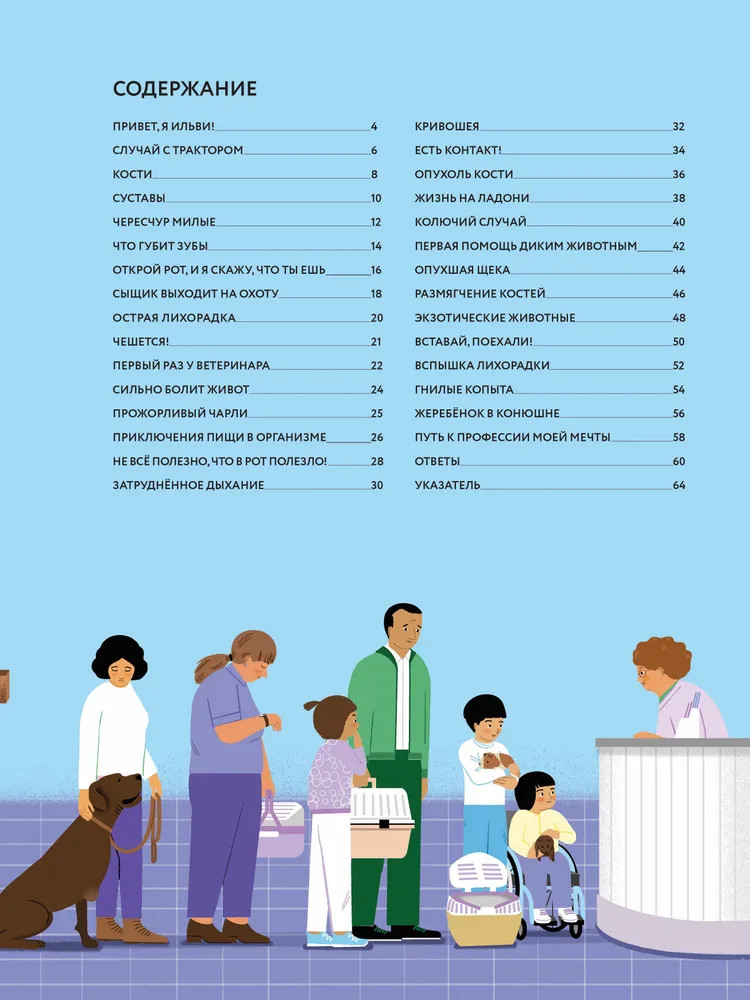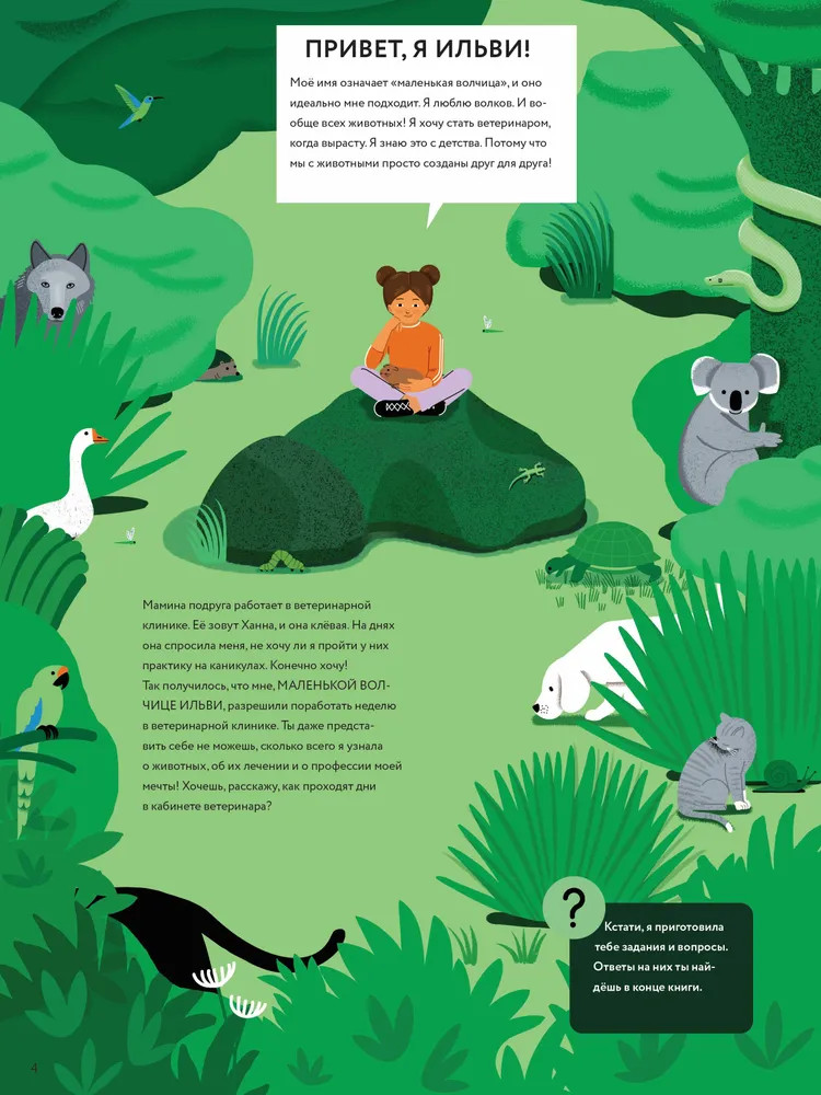 Серия: Мир вокруг нас Приглашаем вас пройти недельную практику в настоящей ветеринарной клинике вместе с главной героиней книги, девочкой Ильви, которая мечтает стать ветеринаром и лечить животных! Вместе с ней вы побываете на приёме мелких зверей и рептилий, в рентгеновском кабинете, в операционной и в лаборатории, а ещё объедете все фермы в округе! Вы узнаете много нового и интересного о зубах и костях, о работе пищеварения и сердца, о том, какие витамины и минеральные вещества нужны домашним питомцам и животным на ферме. Вас также ждут задания, вопросы и полезные советы, как заботиться о зверях и птицах: домашних, диких и экзотических. |