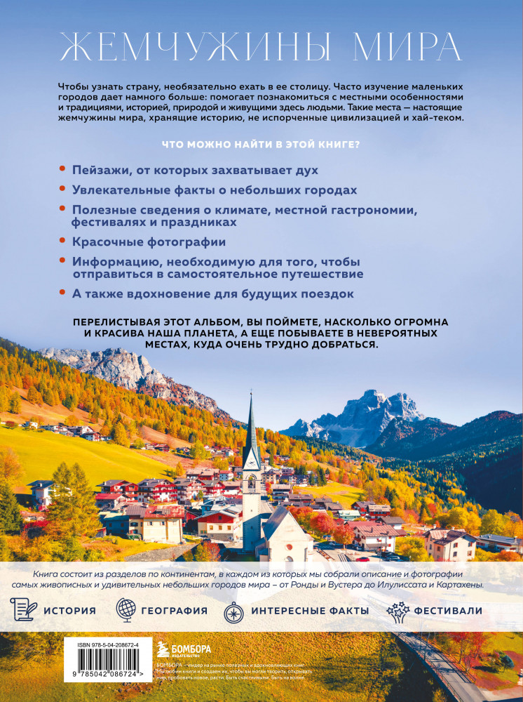 Серия: Подарочные издания. Туризм Чтобы узнать страну, необязательно ехать в ее столицу. Часто знакомство с маленькими городами дает намного больше: помогает познакомиться с местными особенностями и традициями, историей, природой, живущими здесь людьми. Эта книга для тех, кто выбирает путешествия в ритме slow travel, где ценность — не в количестве галочек на карте, а в глубине впечатлений.