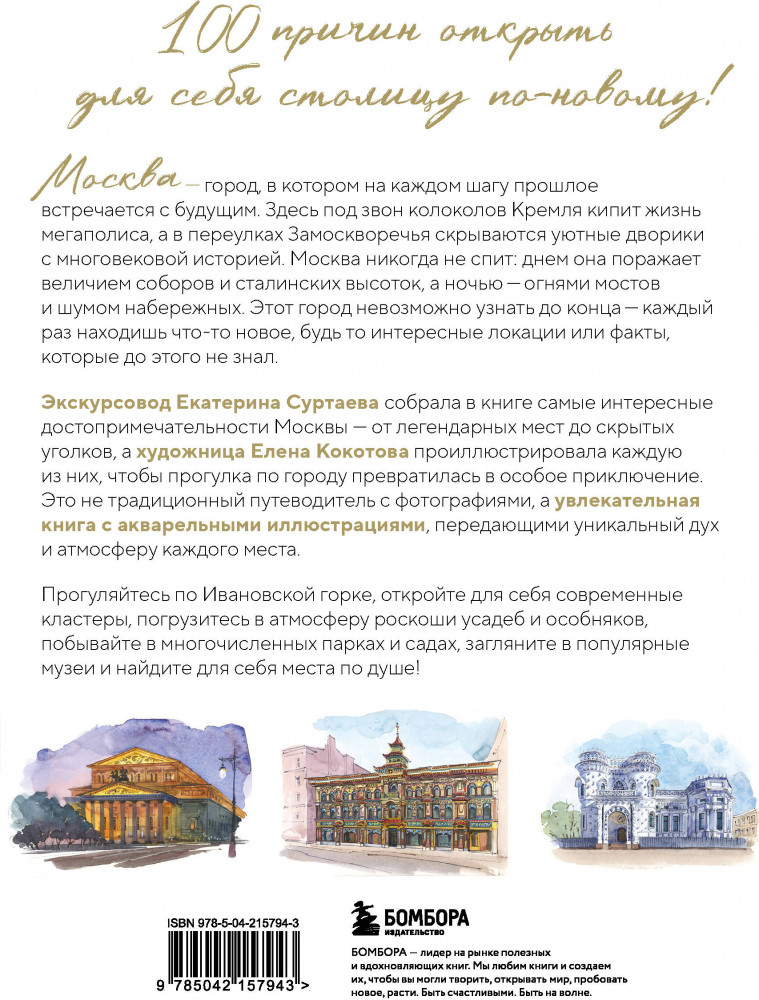 Эта книга приглашает в путешествие по 100 вдохновляющим местам столицы — от старинных усадеб до современных арт-кварталов. Каждая страница — это новый взгляд на город, его настроение и ритм.