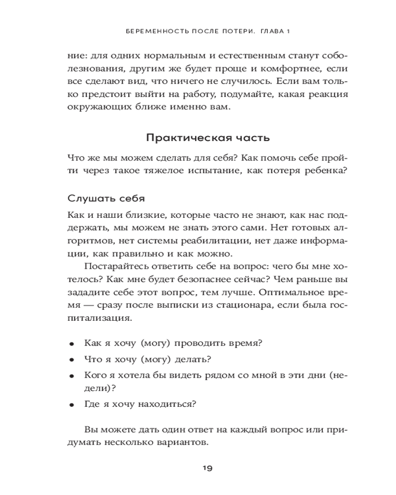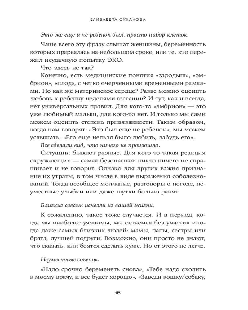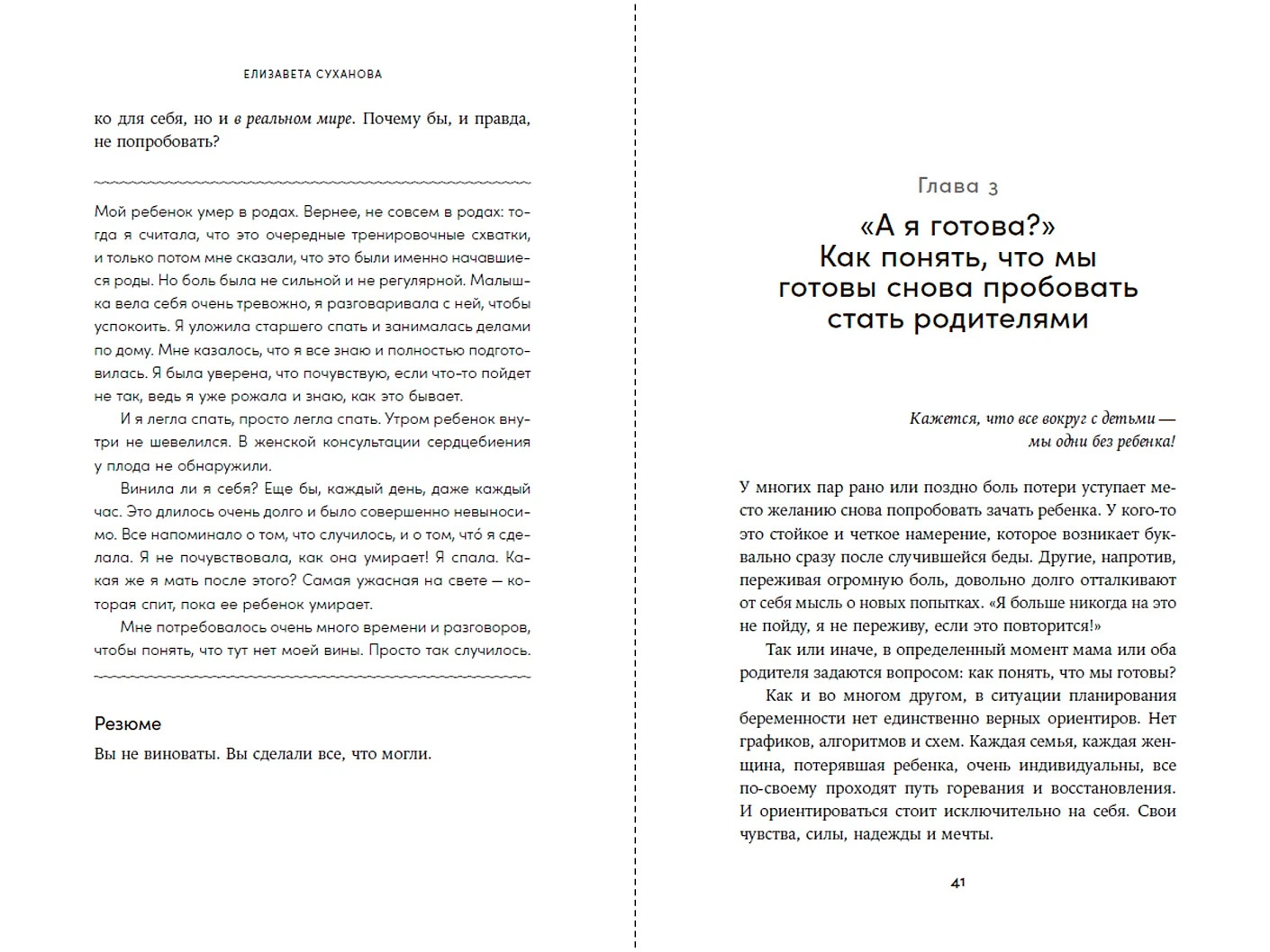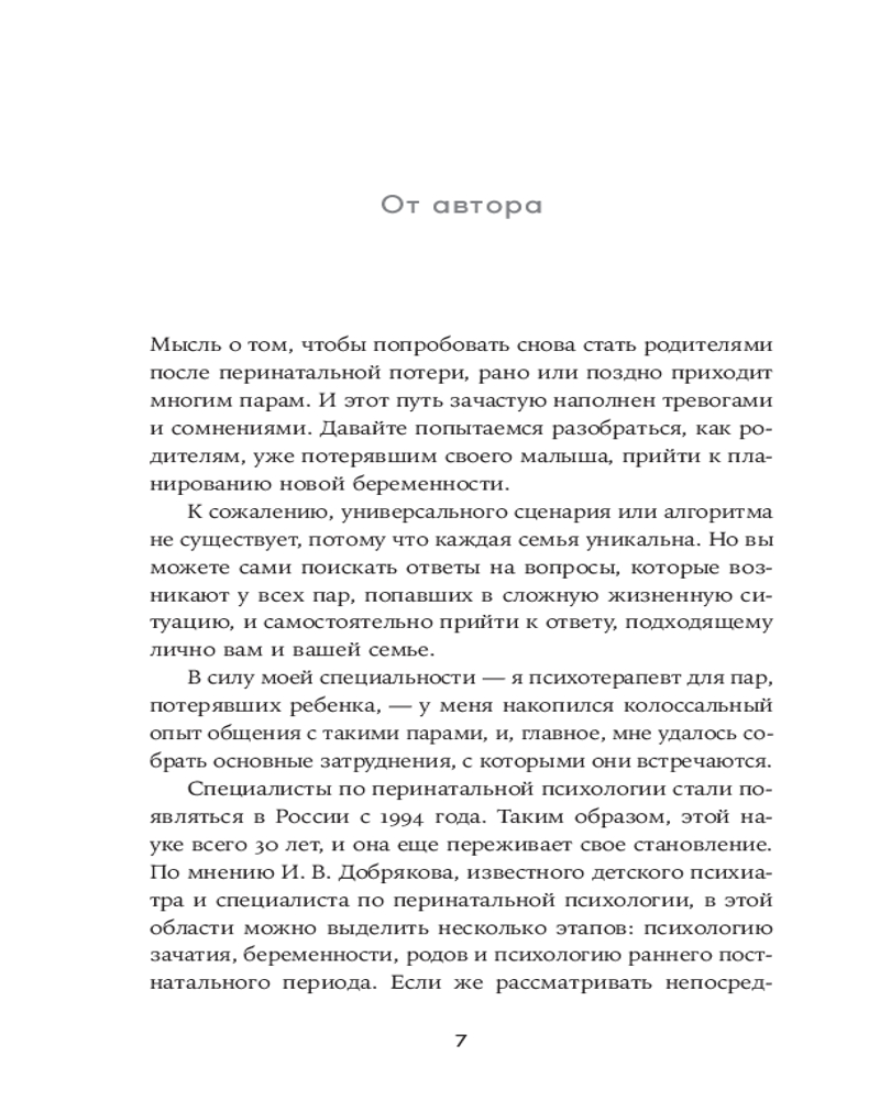 Мысль о том, чтобы попробовать снова стать родителями после потери ребенка, рано или поздно приходит ко многим парам. Книга перинатального психотерапевта Елизаветы Сухановой поможет разобраться, как семье, на любом сроке потерявшей своего малыша, прийти к планированию новой беременности. Вы узнаете, как быть с чувством вины, болью, тревогой и страхом, что отвечать на неудобные вопросы и где найти силы и спокойствие. Здесь собран колоссальный авторский опыт общения с парами и основные затруднения, с которыми можно столкнуться. В каждой главе есть практическая часть для самостоятельной работы: полезные упражнения и техники из разных направлений психологии. |