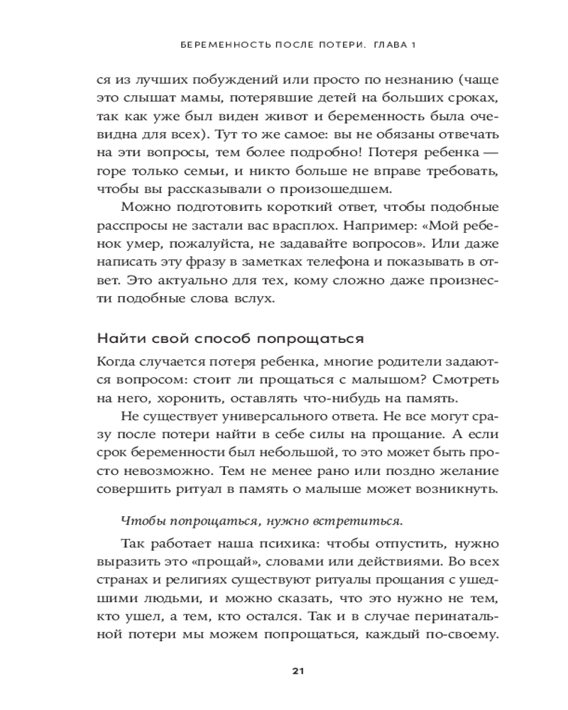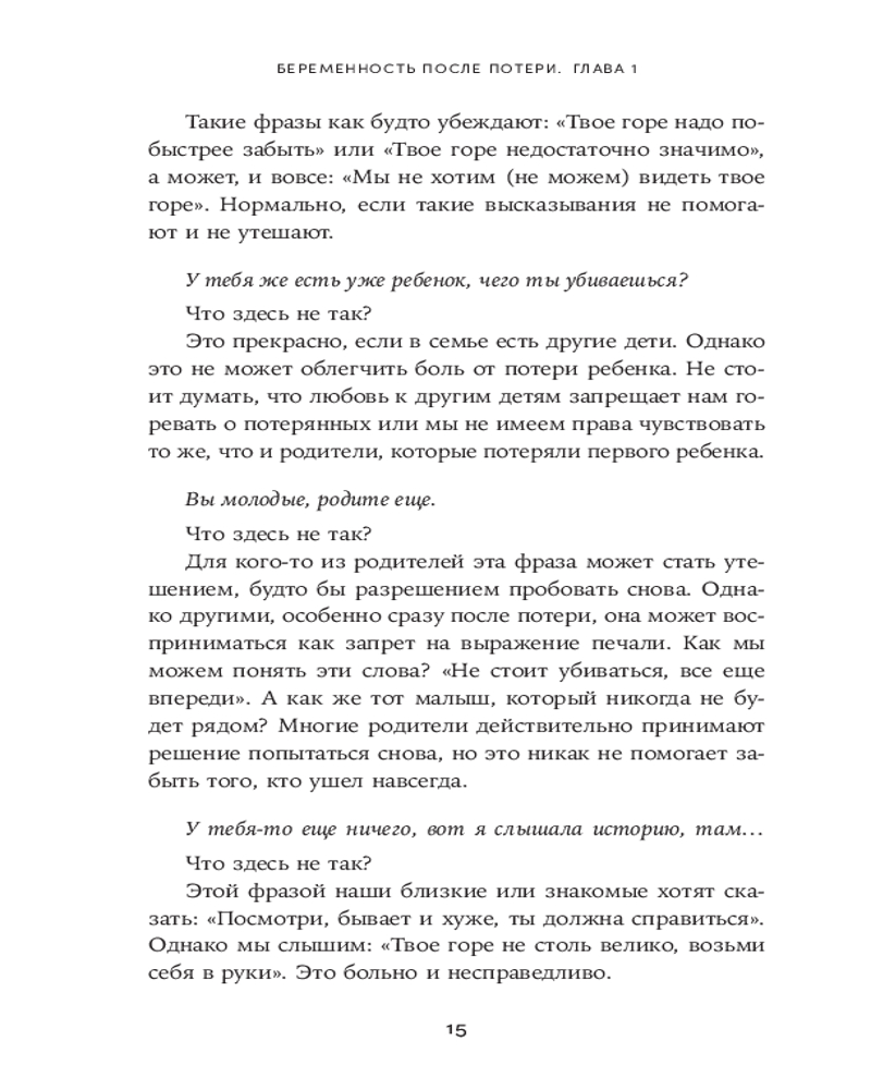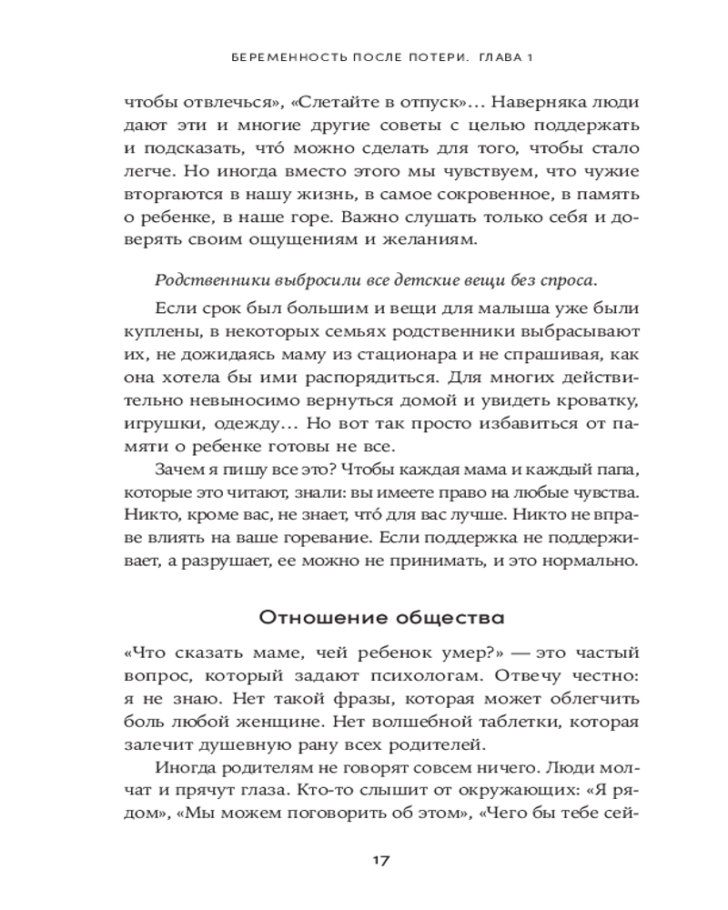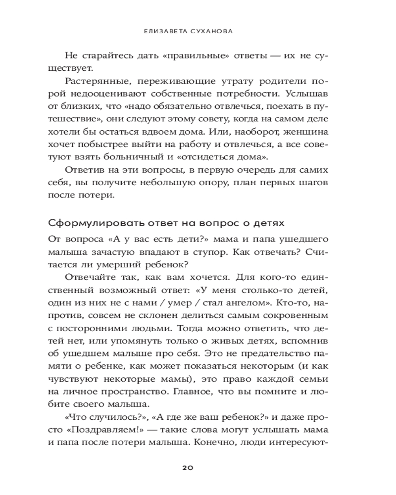 Мысль о том, чтобы попробовать снова стать родителями после потери ребенка, рано или поздно приходит ко многим парам. Книга перинатального психотерапевта Елизаветы Сухановой поможет разобраться, как семье, на любом сроке потерявшей своего малыша, прийти к планированию новой беременности. Вы узнаете, как быть с чувством вины, болью, тревогой и страхом, что отвечать на неудобные вопросы и где найти силы и спокойствие. Здесь собран колоссальный авторский опыт общения с парами и основные затруднения, с которыми можно столкнуться. В каждой главе есть практическая часть для самостоятельной работы: полезные упражнения и техники из разных направлений психологии. |